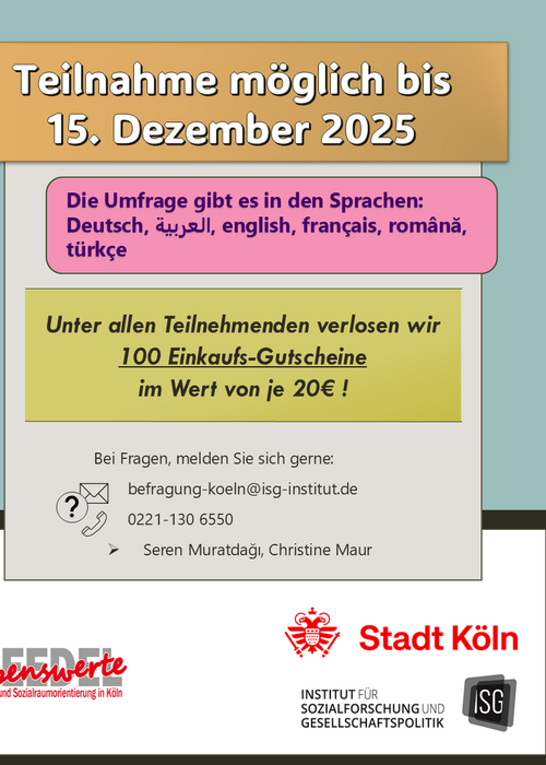 >> Mitmachen: Genaue Infos zur Befragung finden Sie unten – zur direkten Teilnahme geht es hier: https://umfrage.isg-institut.de/uc/b-koeln/