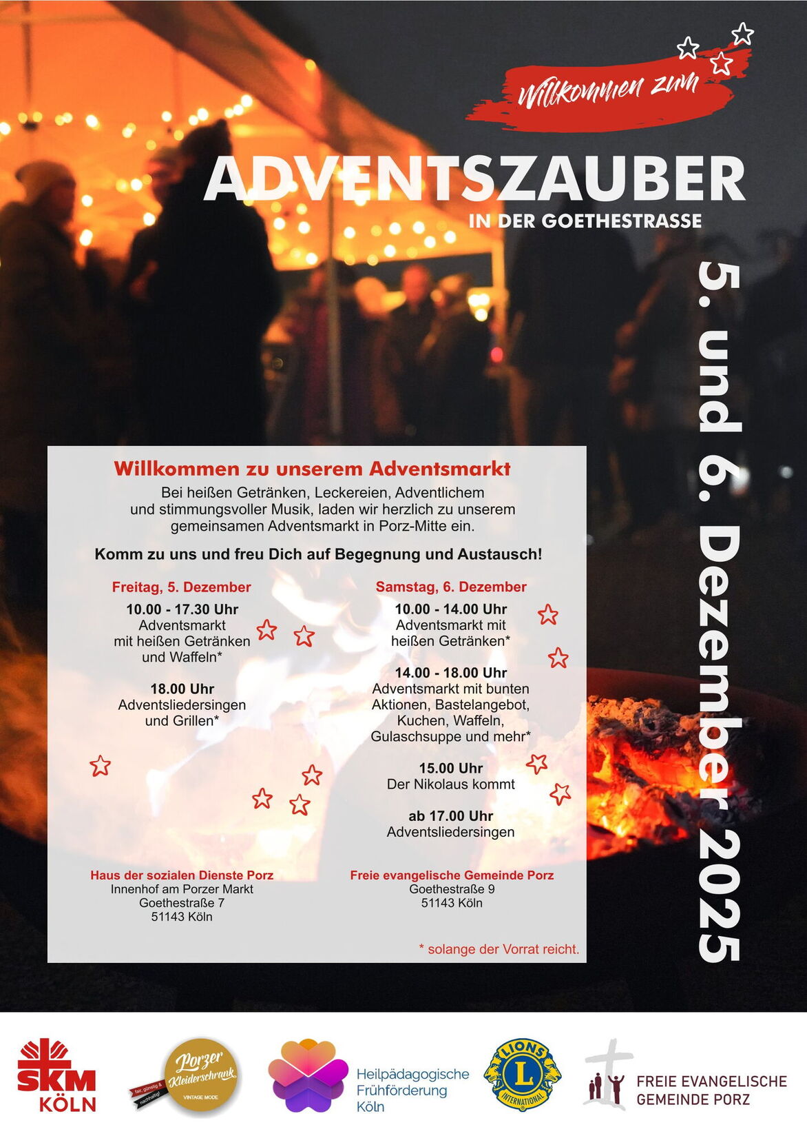 Am Abend werden stimmungsvolle Adventslieder gesungen. Für die kleinen Besucher gibt es am 6. Dezember ein kreatives Bastelangebot sowie einen Besuch des Nikolaus.