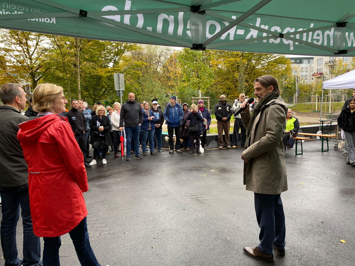 Mit der Eröffnung der neuen Parkanlage an der Glashüttenstraße sollte sich zeigen, ob die etablierte Community der Kümmerer sich auf die Pflege des Parks übertragen lässt. Die Tafeln, welche zuvor auf dem Porzer Pfad über Angebote informiert haben, sind nun an den Zaun am Park gegenüber vom Pump Track umgezogen und informieren über die Aktionen der Community rund um den neuen Park. Die ersten monatlichen Müllsammelaktionen sind bereits gestartet und - auch wenn die Aufgaben gewachsen sind - zeigt sich: die "Community der Kümmerer" bleibt dran!