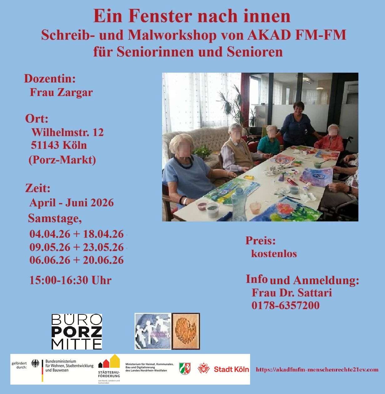 Der neue künstlerische Mal- und Schreibworkshop „Ein Fenster nach innen“ der AKAD FM-FM richtet sich an Seniorinnen und Senioren aus Porz-Mitte und lädt dazu ein, Erinnerungen, Lebensgeschichten und persönliche Erfahrungen kreativ auszudrücken.