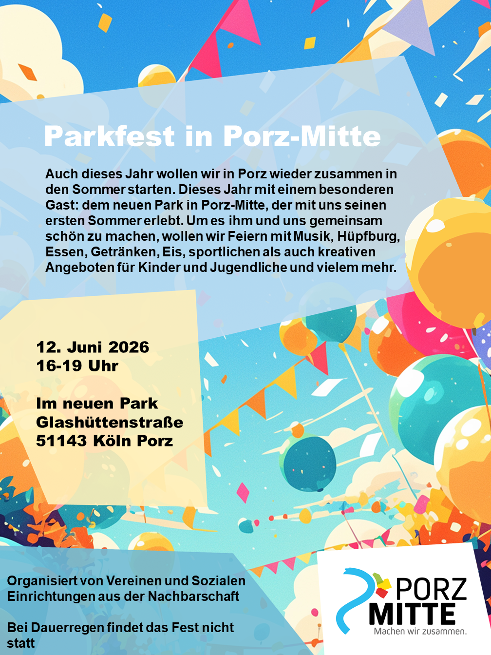 Auch dieses Jahr findet wieder ein Nachbarschaftsfest der Papageiensiedlung statt. Diesmal allerdings mit einem kleinen Unterschied, da der neue Park direkt vor der Haustür liegt werden wir in diesem umziehen und unser Nachbarschaftsfest den Namen Parkfest geben. Komm vorbei für Aktionen, Musik, Essen und gemeinsames Beisammensein in der Nachbarschaft und darüber hinaus.